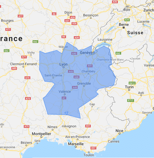 Nous nous déplaçons dans toute la région Rhône-Alpes : Ardèche (07), Drôme (26), Isère (38), Loire (42), Haute-Loire (43) et Rhône (69).